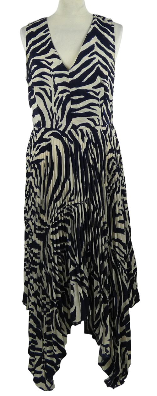 Dámske tmavomodro-smotanové vzorované plisované midi šaty AX