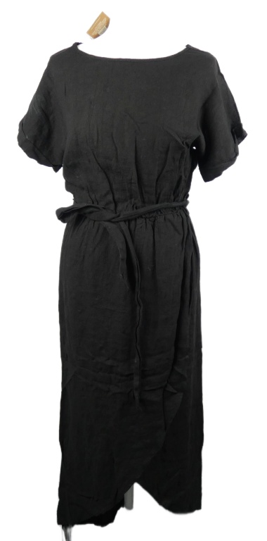 Nové - Dámske čierne ľanové midi šaty s opaskom Made in Italy