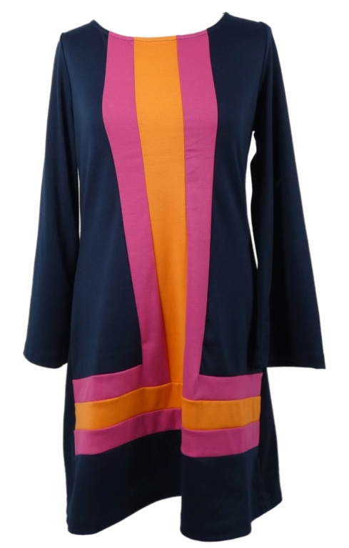 Dámske tmavorůžovo-oranžové pruhované šaty