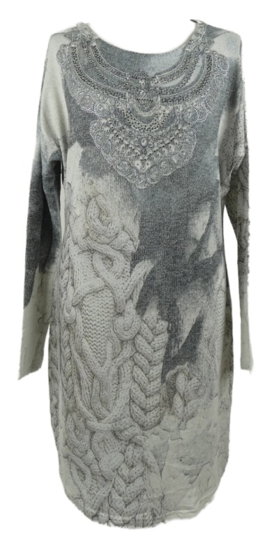 Dámske sivé vzorované svetrové šaty s kamienkami Missy