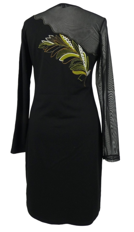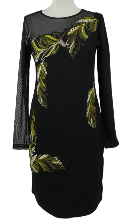 Dámske čierne šaty s tylovým rukávom a výšivkou Next