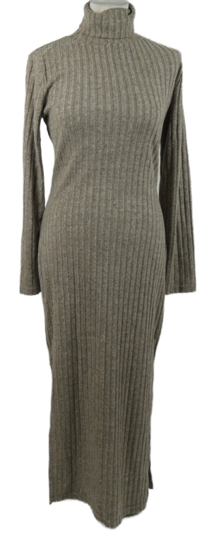 Dámske hnedé rebrované úpletové midi šaty s rolákom