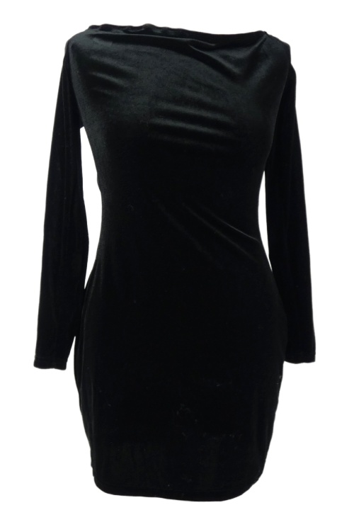Dámske čierne zamatové šaty s lodičkovým výstřihem Shein