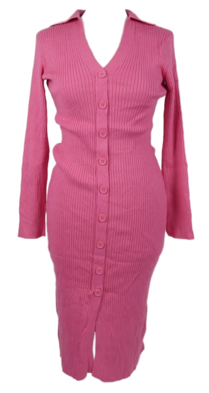Dámske tmavoružové rebrované svetrové šaty s golierikom New Look