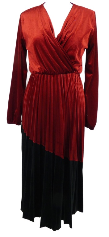 Nové - Dámske červeno-čierne zamatové midi šaty