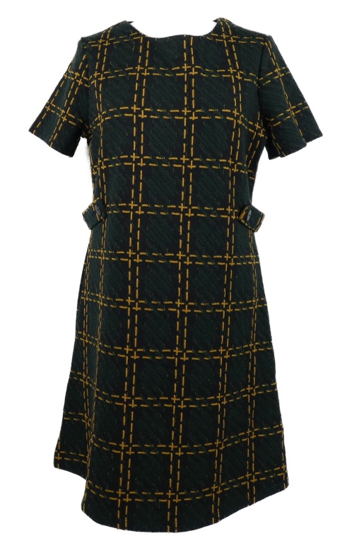 Dámske tmavomodro-zeleno-okrové kockované šaty Tu