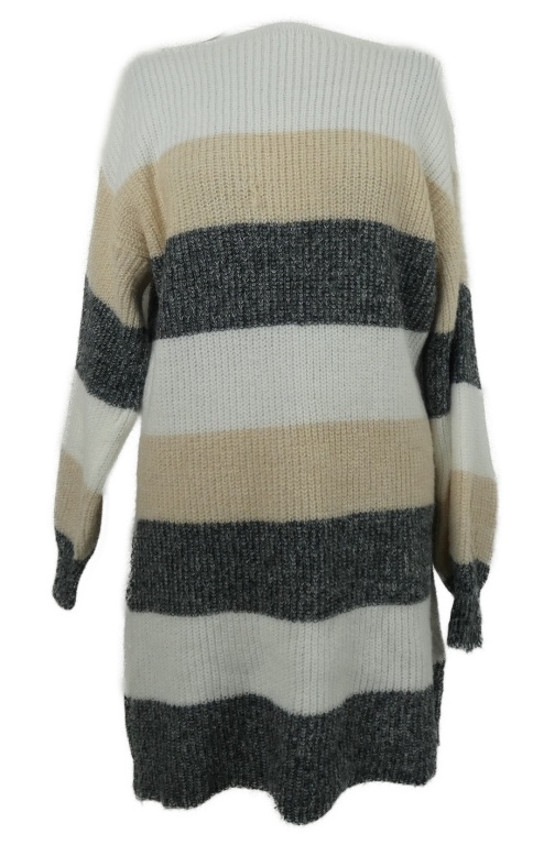 Dámske bielo-sivo-pudrové pruhované svetrové šaty