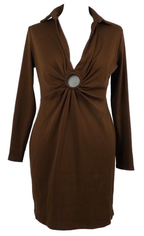 Dámske hnedé rebrované šaty s aplikací a golierikom New Look