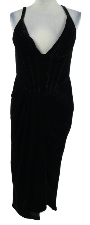 Nové - Dámske čierne zamatové midi šaty PrettyLittle Thing