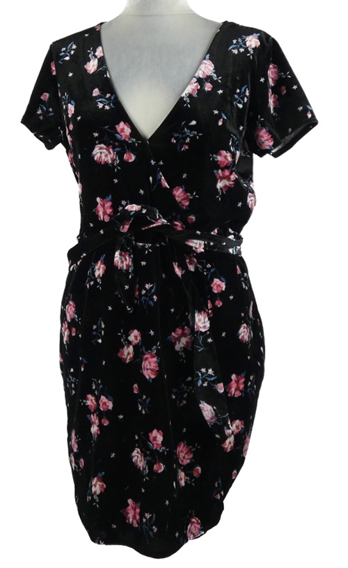 Dámske čierne kvetované zamatové šaty s opaskom H&M