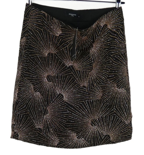 Nové - Dámska čierno-svetloružová vzorovaná trblietavá sukňa Reserved