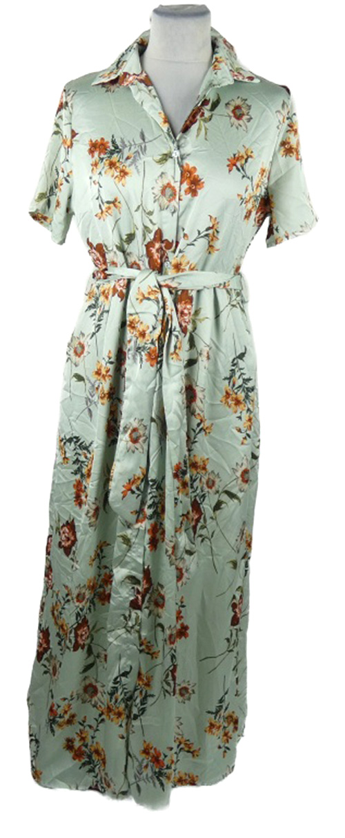 Dámske svetlomodré kvetované košeľové dlhé šaty s opaskom