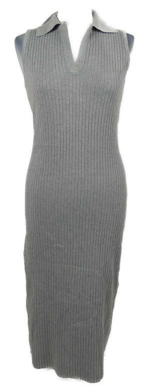 Dámske sivé rebrované pletené midi šaty s golierikom New Look
