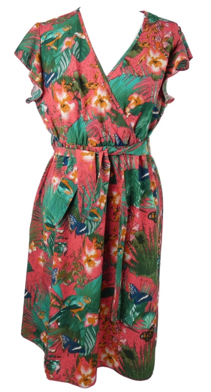 Dámske zeleno-ružové šaty s listami a opaskom Shein