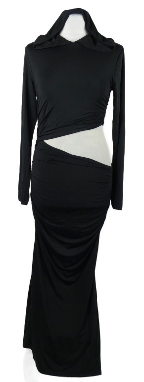 Dámske čierne elastické dlhé šaty s prestrihom a kapucňou Zara