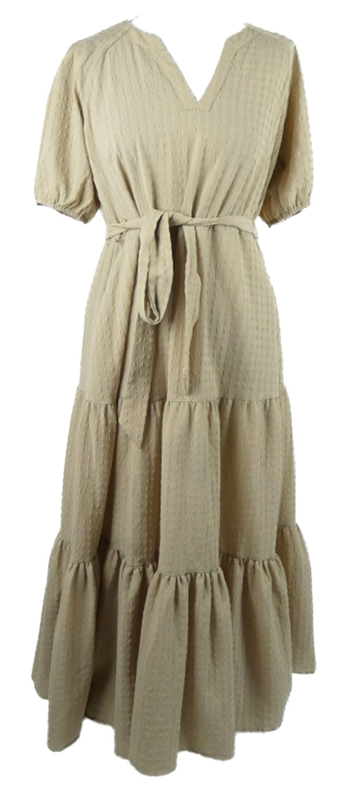 Dámske béžové strukturované midi šaty s opaskom Gallery