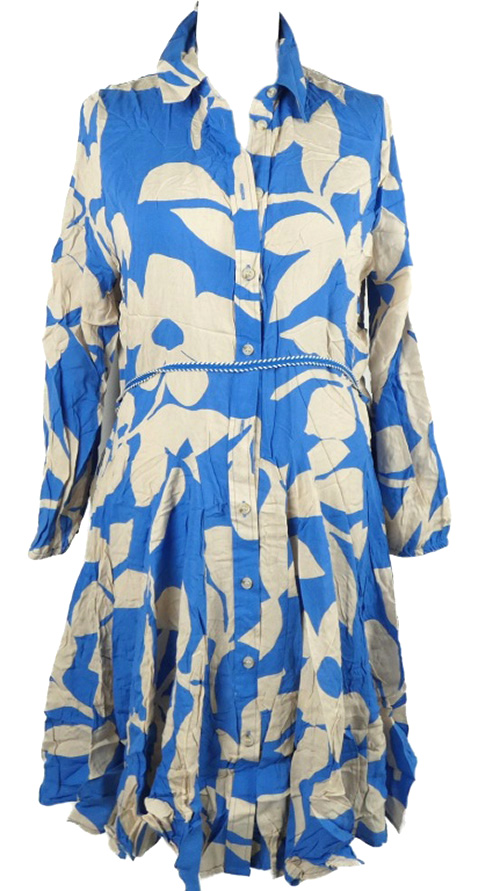 Dámske modro-béžové kvetované košeľové šaty s opaskom