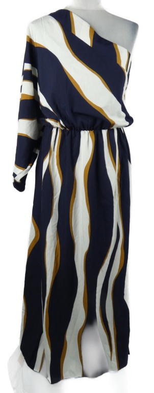 Dámske tmavomodro-bielo-medové vzorované dlhé asymetrické šaty Emery Rose