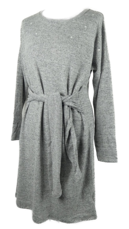 Dámske sivé melírované svetrové šaty s cvokmi a zavazováním Esmara