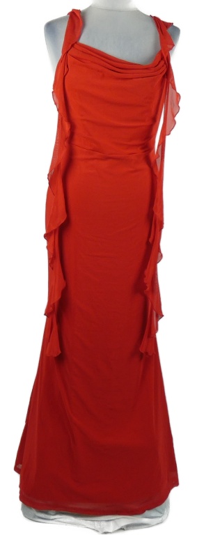 Dámske červené tylové dlhé spoločenské šaty s volánikmi Cider