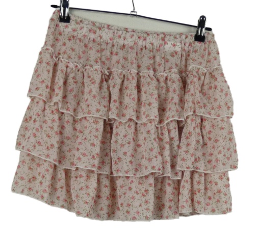 Dámska svetloružová kvietkovana šifónová sukňa s volánikmi