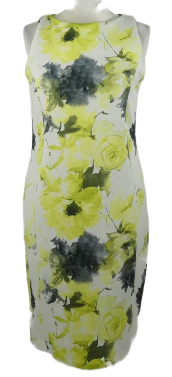 Dámske bielo-limetkové kvetované púzdrové šaty