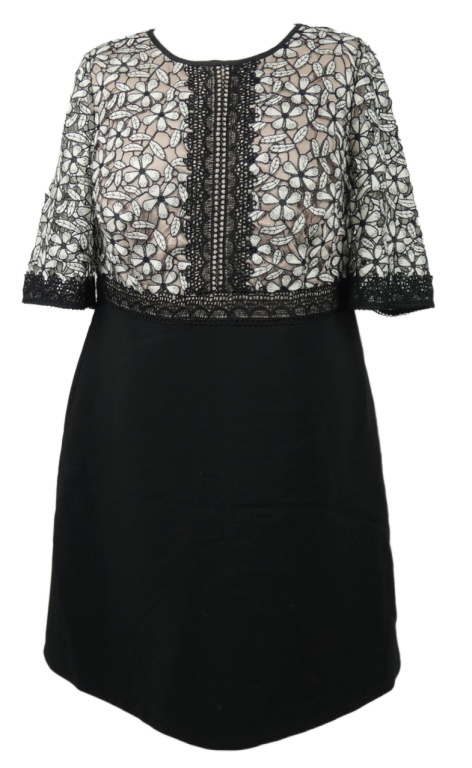 Dámske pudrovo-čierne šaty s krajkovým živůtkem Monsoon