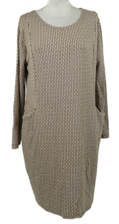 Nové - Dámske hnedo-biele vzorované pletené šaty