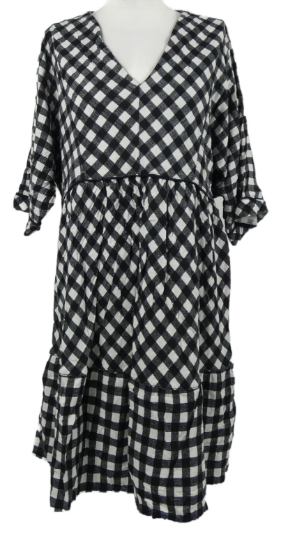 Dámske čierno-biele kárované ľanové midi šaty Next
