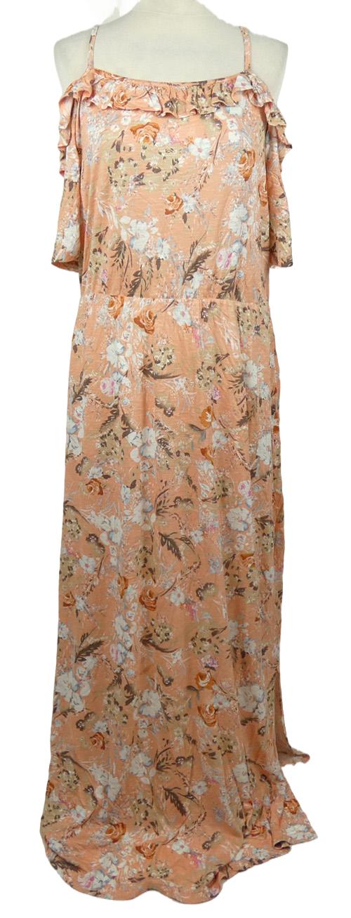 Dámske ružové kvetované dlhé šaty s volnými rameny TU