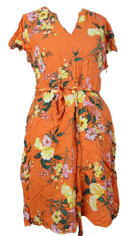 Dámske oranžové kvetované šaty s opaskom Papaya