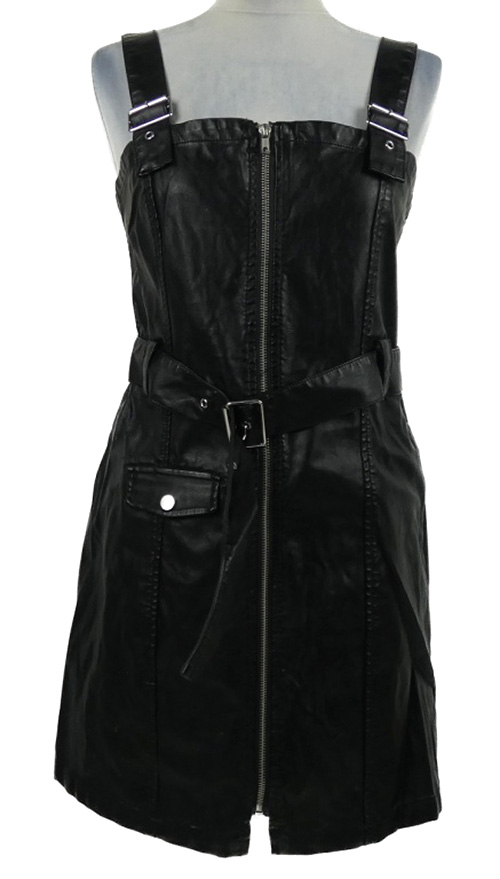 Dámske čierne koženkové šaty s opaskom H&M