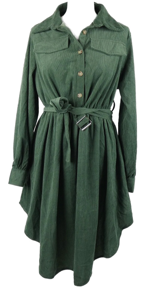 Dámske khaki menšestrové košeľové šaty s opaskom Shein