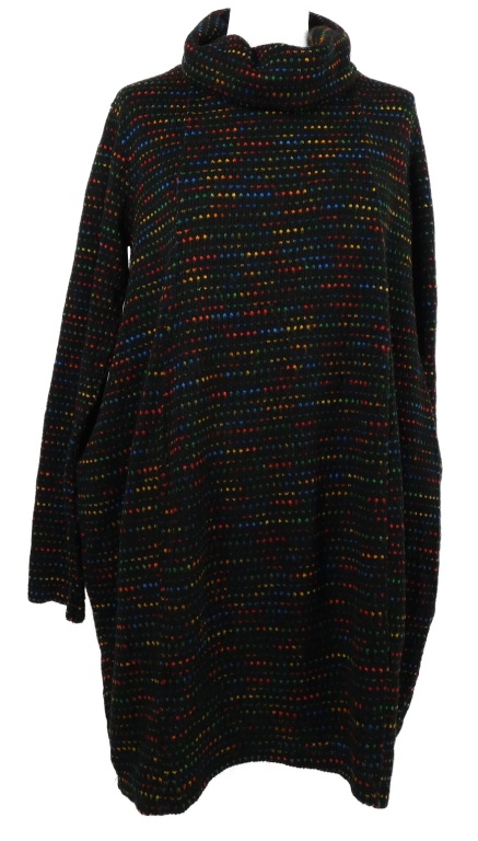 Dámske čierno-farebné vzorované pletené šaty s rolákom