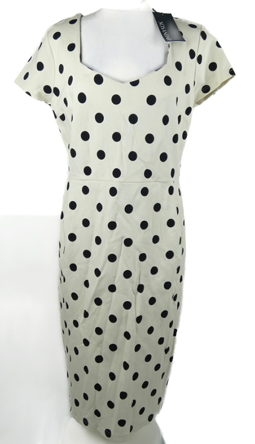 Nové - Dámske bielo-čierne bodkované púzdrové šaty Sosandar