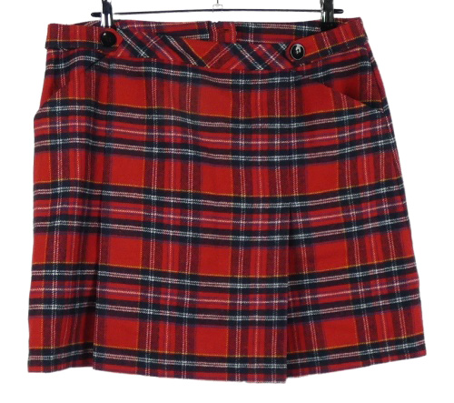 Dámska červeno-tmavomodrá kockovaná vlnená sukňa TU