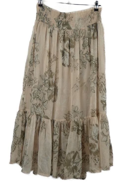 Dámska svetloružová kvetovaná šifónová midi sukňa