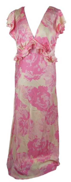 • Nové - Dámske neónově ružové kvetované dlhé saténové šaty s volánikmi New Look