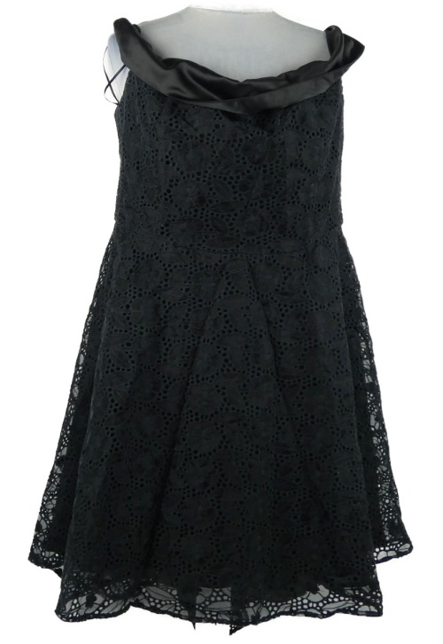 • Dámske čierne madeirové koktejlové šaty s lodičkovým výstřihem Little Black Dress