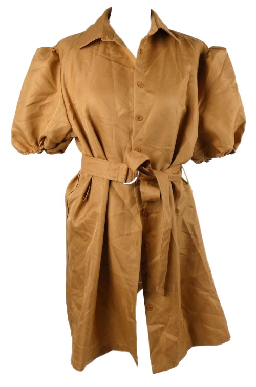 Dámske skořicové košeľové šaty s opaskom PrettyLittle Thing