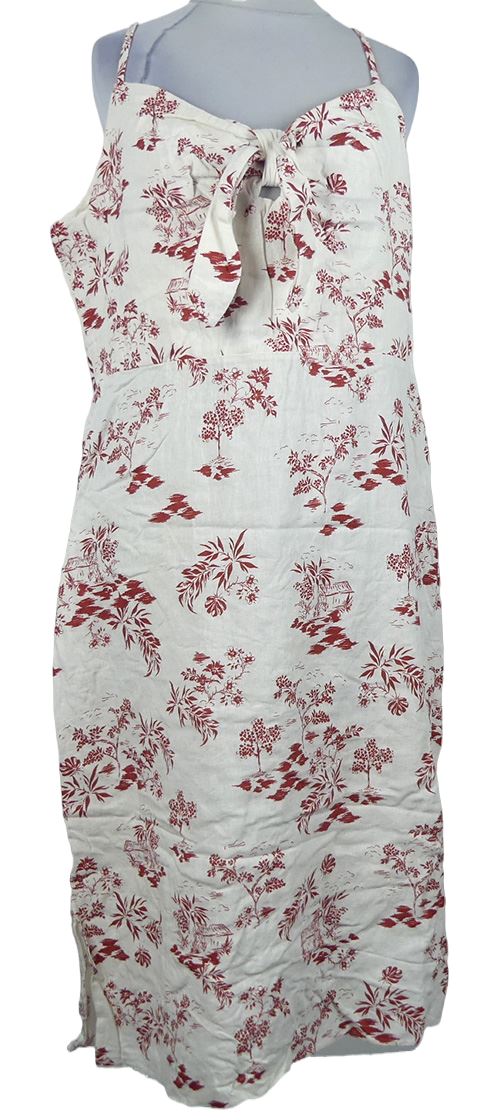 Dámske smetanovo-červené kvetované ľanové šaty New Look