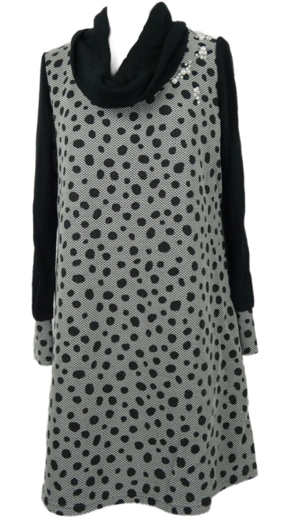 Dámske čierno-biele vzorované pletené šaty s komínovým golierom Libra