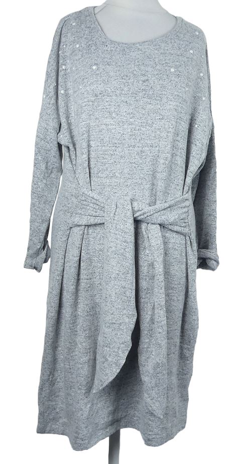 Dámske sivé melírované pletené šaty s cvokmi a opaskom Esmara