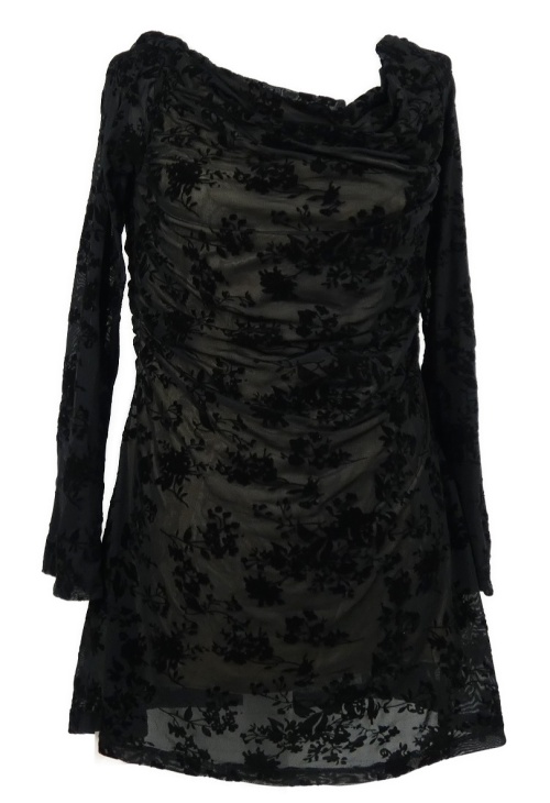 Dámske čierne kvietkovane tylové šaty s lodičkovým výstřihem Shein