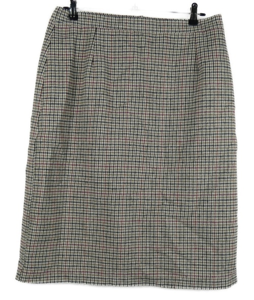Dámska farebná kockovaná púzdrová vlnená sukňa s rozparkem