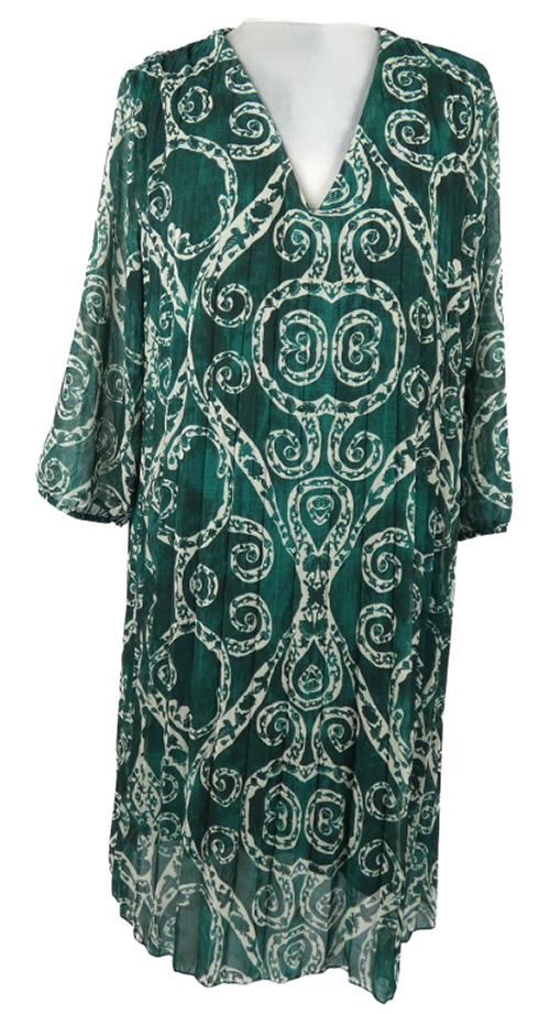 Dámske tmavozelené vzorované šifónové šaty
