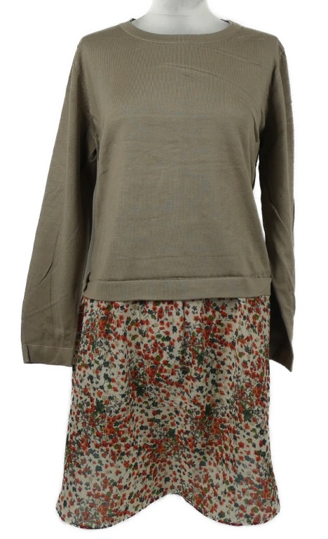 Dámske béžové svetrovo/šifonové šaty s kvetinovým vzorom