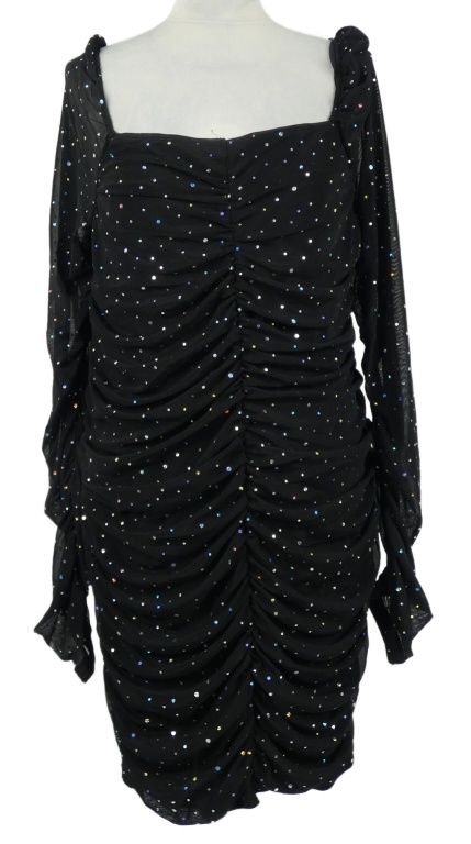 Dámske čierne tylové řasené šaty so trblietkami Shein