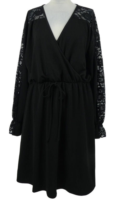 Dámske čierne šaty s čipkovymi rukávy Pink Clove