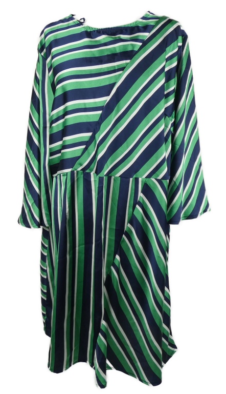 Dámske zeleno-tmavomodré pruhované saténové šaty AX